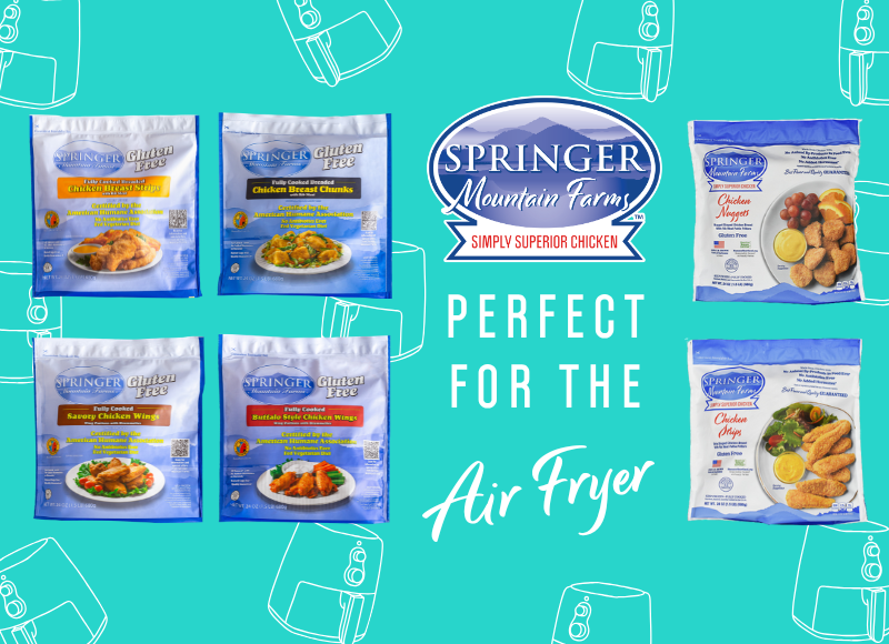 If you love crispy chicken but want the convenience of frozen, fully cooked products, Springer Mountain Farms has you covered. Our gluten-free chicken items are crafted to taste great in the air fryer—giving you that golden crunch without the oil, mess, or stress.